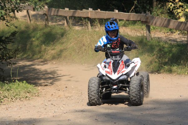 Das TR290 ist der Klassiker unter den TomRide Quads. Mit den freistehenden Rädern kommt es sportlich daher und schaut aus wie ein Rennquad. Rennen, ja das kann es auch. Egal mit welcher der beiden Motorisierungen es ausgestattet ist, das TR290 hat einen enormen Anzug. Je nach Variante kann es dabei auf bis zu 50km/h beschleunigen.